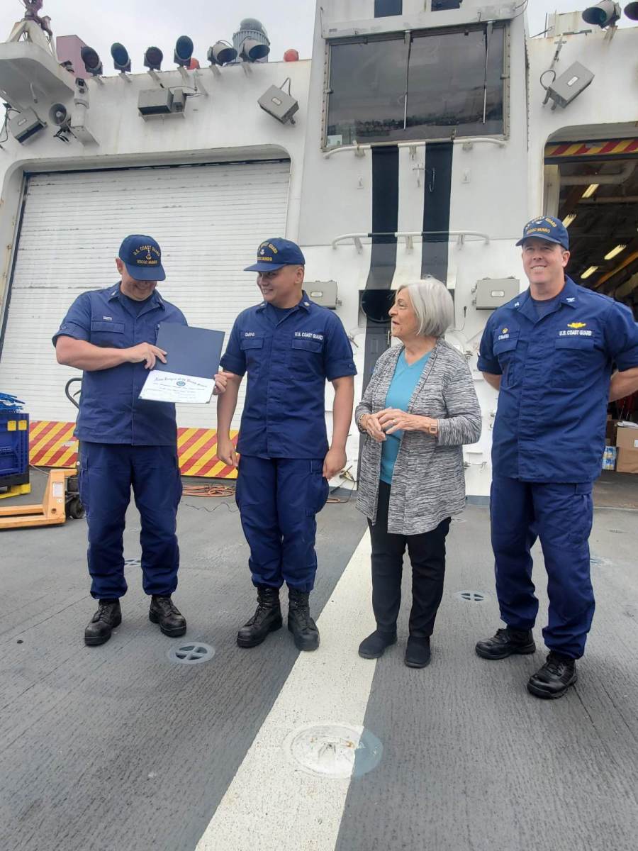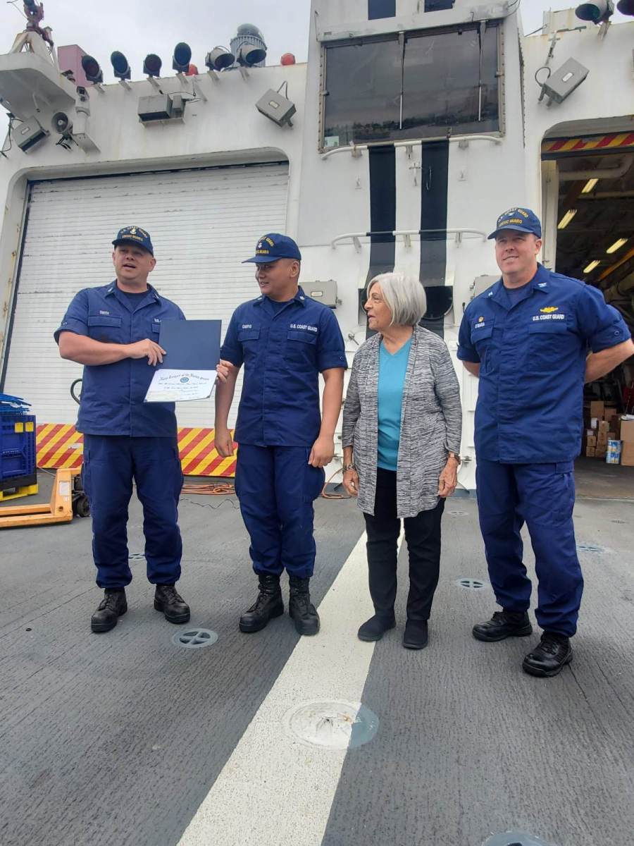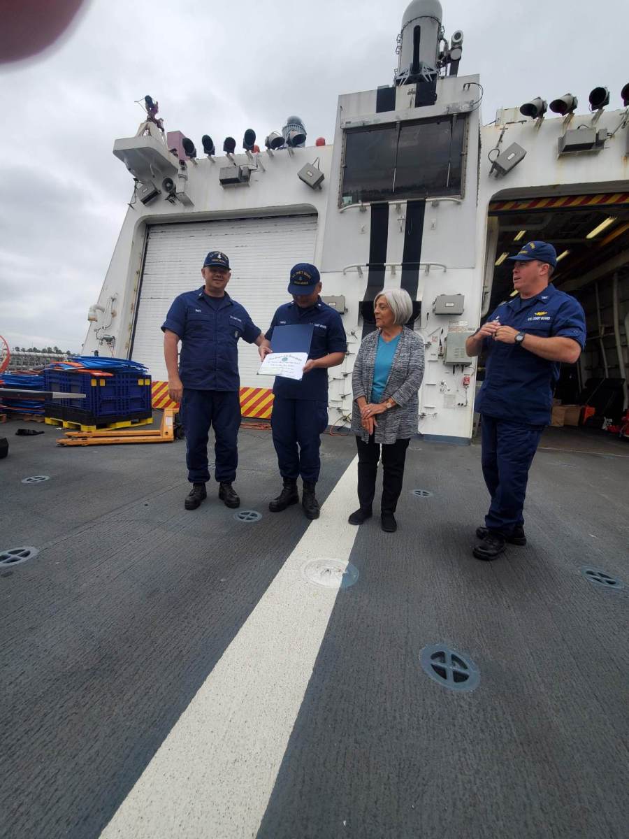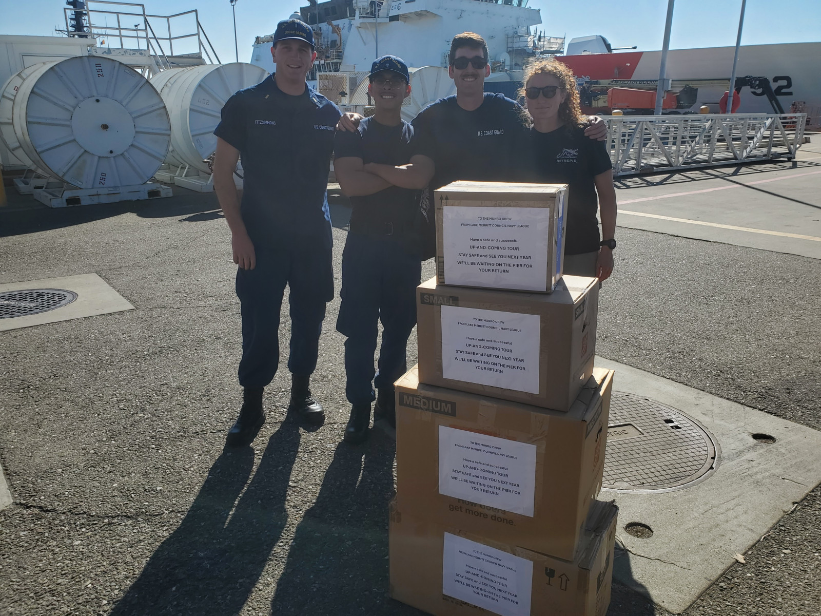 Munro Crew 16 Sept 2021 in Singapore enjoying opening boxes donated by Lake Merritt Navy League.